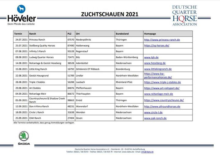 In diesem Jahr richtet die DQHA e.V. in Zusammenarbeit mit dem Sponsor Höveler eine Zuchtschau auf unserer Anlage aus..