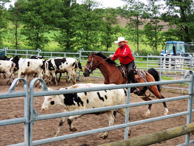 Hier startet ein einzelner Reiter, der ein Rind aus der Herde aussondern und in den Pferch treiben muss. Gewinner ist, wer die schnellste Zeit reitet.